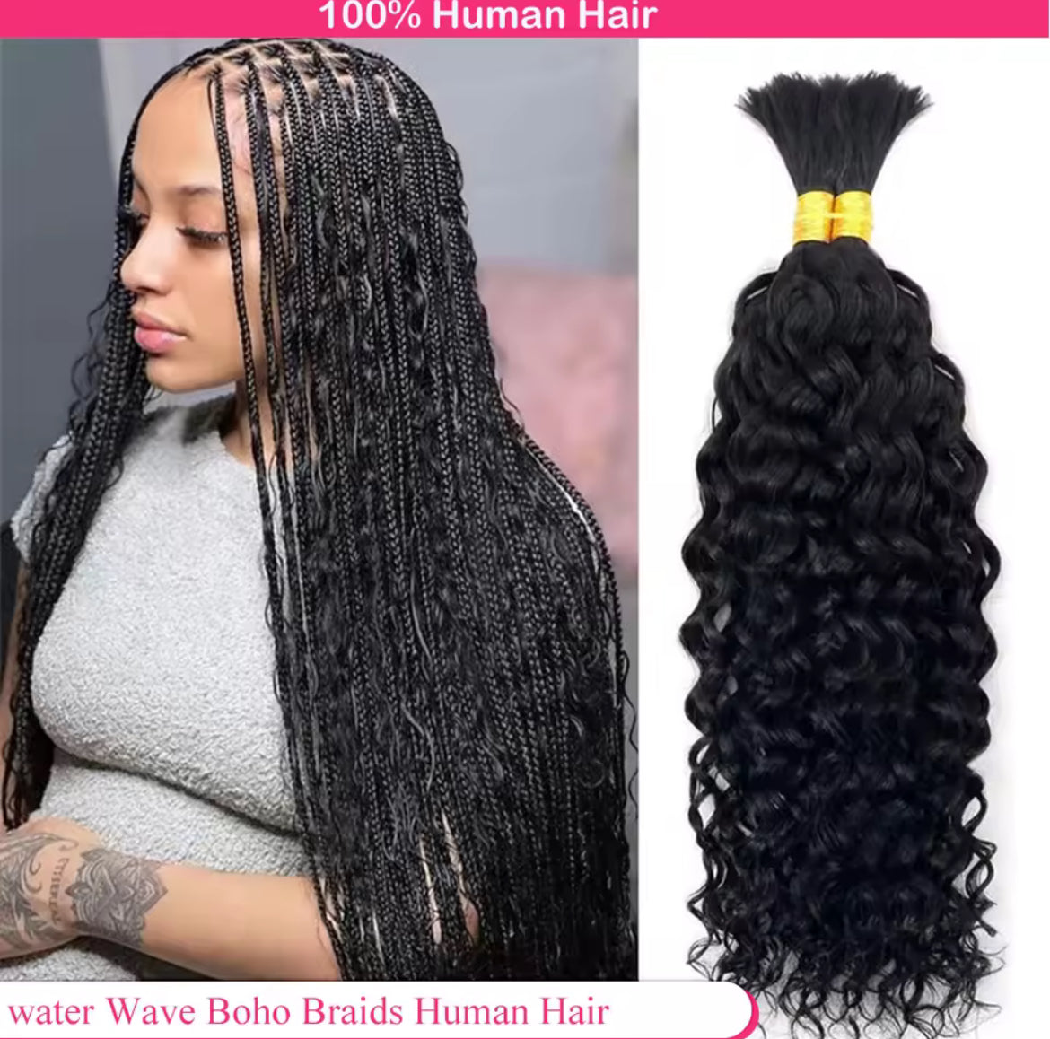 Human Bulk Braiding Hair (no weft)-Virgin Brazilian Deep Wave 18in (2)bundle-