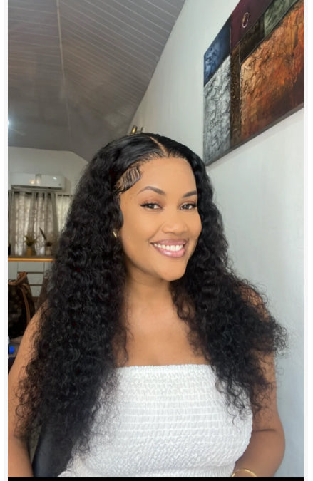 13x4 Full frontal 100% Brazilian human hair wig cap made with well defined 26 inches of deep wave curl pattern coils.